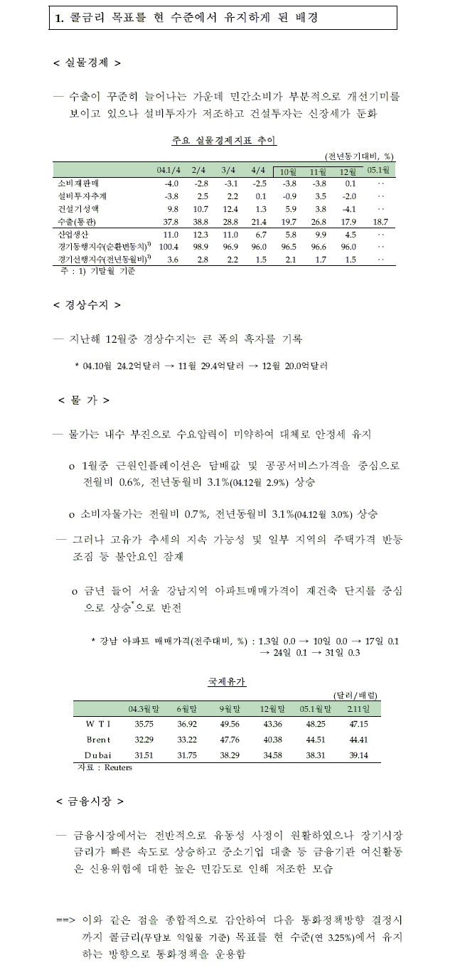 2005년 2월중 통화정책방향 - 현금리 유지(금통위)