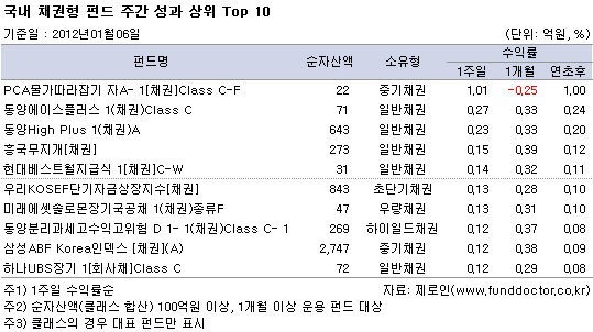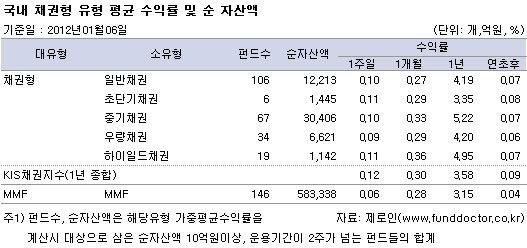 연 초 이후 단기물 금리하락과 지속되는 유로존 불안감의 여파로 국내채권펀드 수익률은 소폭 상승했다.