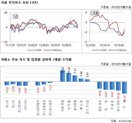 대외적으로 유로존 재정위기와 글로벌 경기침체 우려가 국내주식펀드 성과에 부정적이었고, 대내적으로는 3분기 GDP 성장둔화 및 원화 강세에 따른 수출 실적 악화 우려가 수익률에 악영향을 미친 것으로 분석된다.