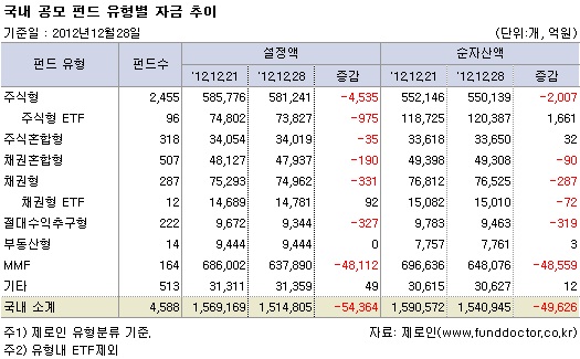 [12/28 국내]국내주식펀드 연말 배당수익 반영으로 0.37% 상승