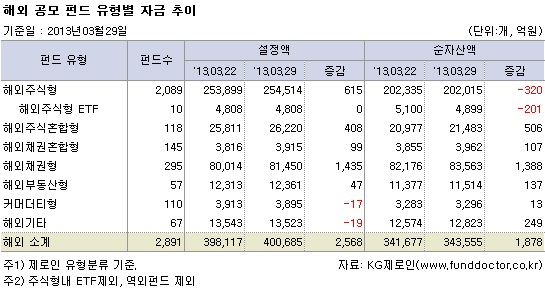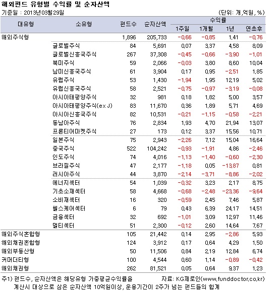 [03/29 해외] 키프로스 구제금융 여파로 해외주식펀드 약세 지속