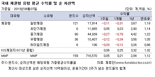 국내 채권형 펀드 주간 성과 상위 10