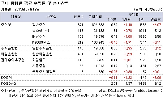 [07/19 국내] 국내주식펀드 3주 연속 상승, 차익실현 매물이 상승폭 제한