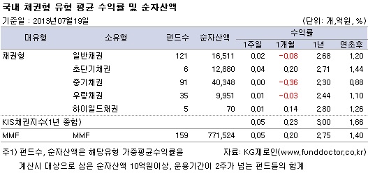 국내채권펀드, 채권시장 보합의 여파로 0.02% 상승에 그쳐