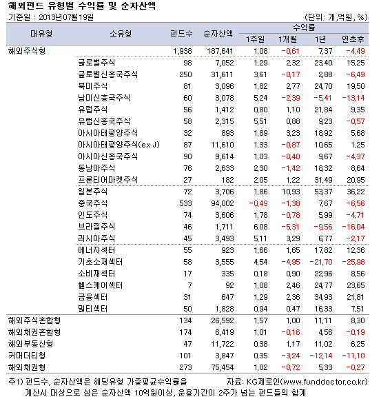 [07/19 해외] 버냉키 훈풍에 해외주식펀드 한 주간 1.08% 상승