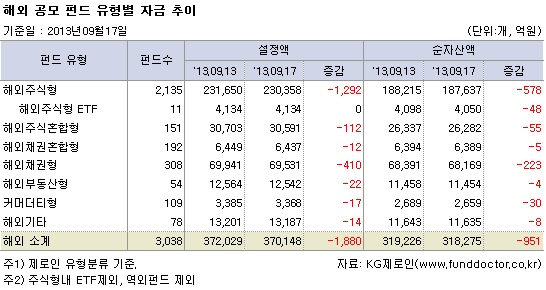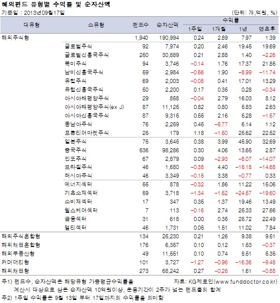 [09/17 해외] 해외주식펀드 3주 연속 상승, 양적완화 축소 우려가 호재로 작용
