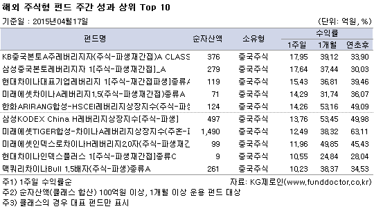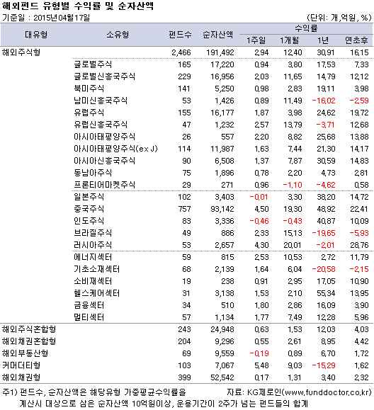 [04/17 해외] 중국주식펀드 상승세에 해외주식펀드 2.94% 상승