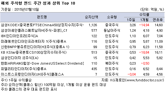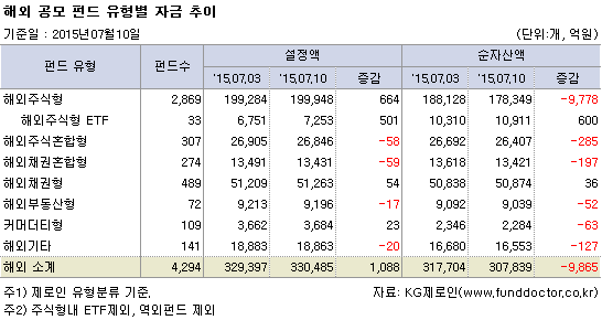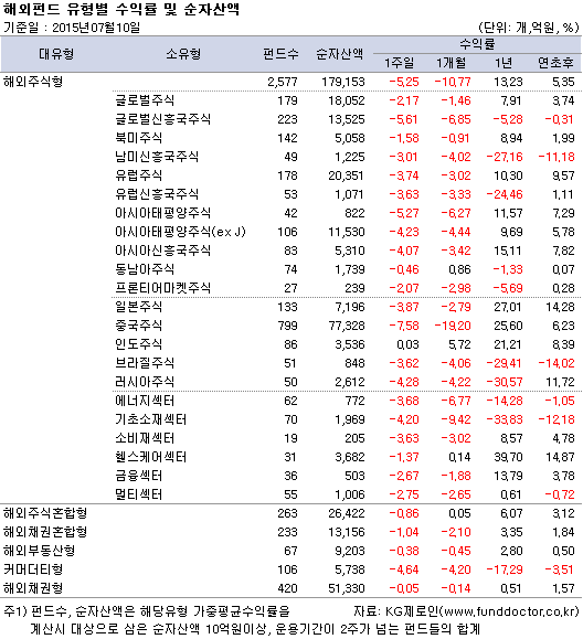 [07/10 해외] 중국주식 급락으로 해외주식펀드 약세