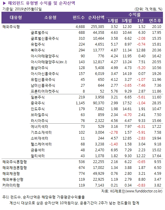 [2019년 4월 해외] 해외주식형 펀드 3.52% 상승