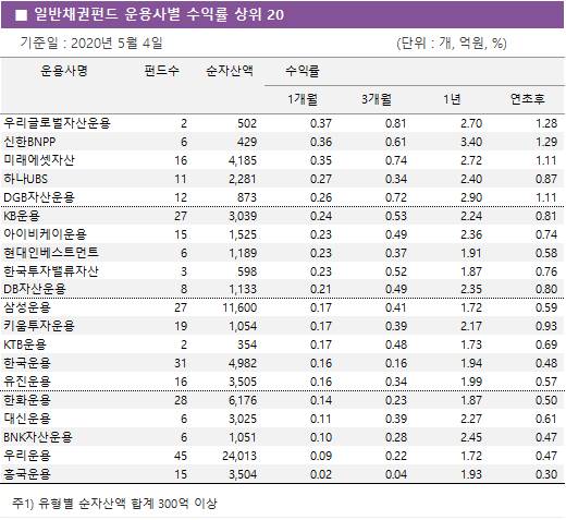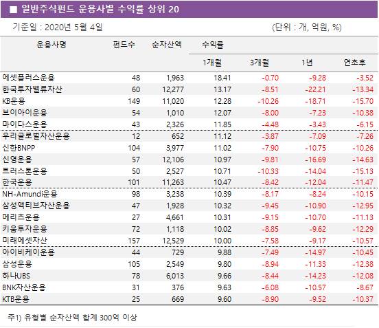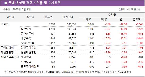 펀드평가사 KG제로인(www.Funddoctor.co.kr)이 5월 4일 오전 공시된 기준가격으로 펀드 수익률을 조사한 결과 국내 주식형 펀드는 4월 한달간 10.67% 상승했다.