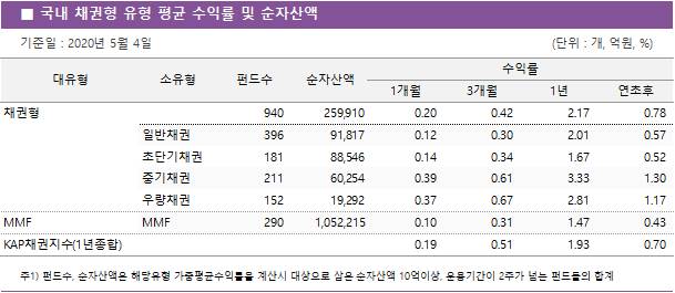 주식형 펀드 외에 일반주식혼합 펀드는 7.73% 상승했고, 일반채권혼합 펀드는 4.10%를 기록했다. 절대수익추구형 펀드 중에서는 공모주 하이일드와 채권알파 유형이 0.92%, 0.88%로 미미한 성과를 보였고, 시장중립 펀드는 3.19%를 기록했다.