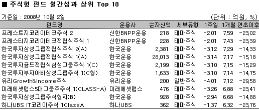 [10/02 국내] 주식펀드 하락…중소형펀드 상대적 선방