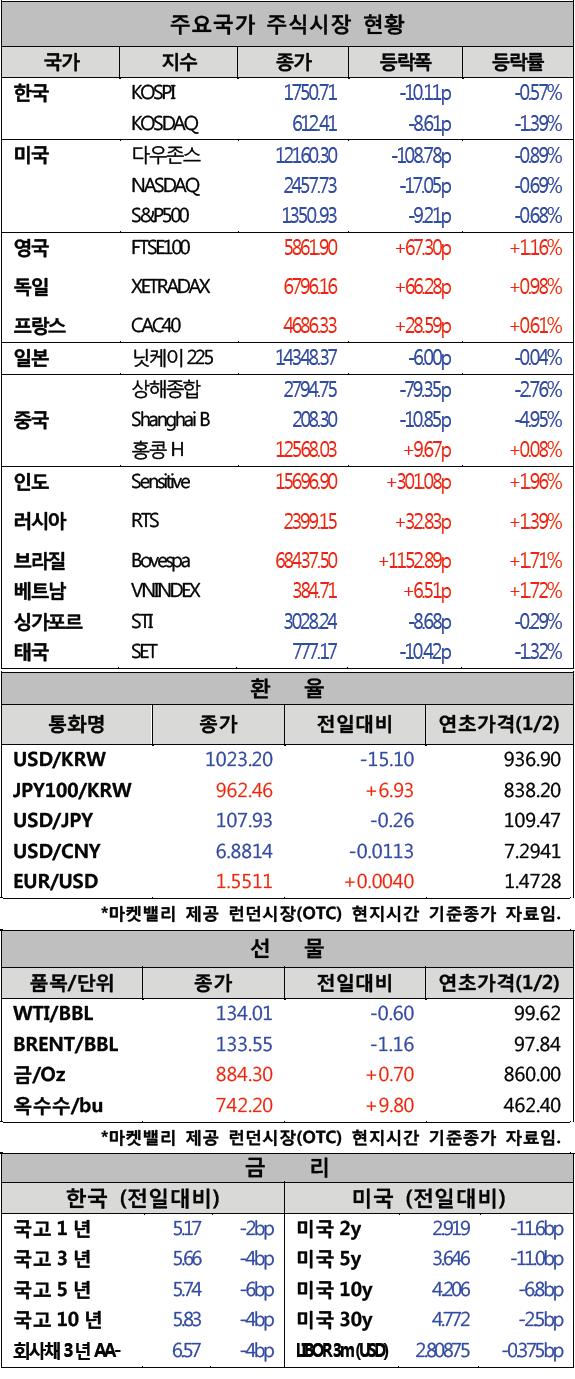17일 한눈에 알아보는 전세계 주요시장 현황