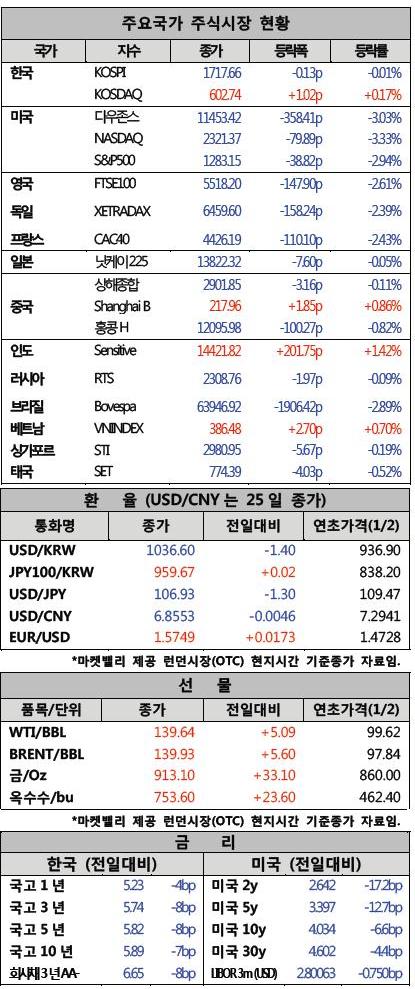 26일 한눈에 알아보는 전세계 주요시장 현황