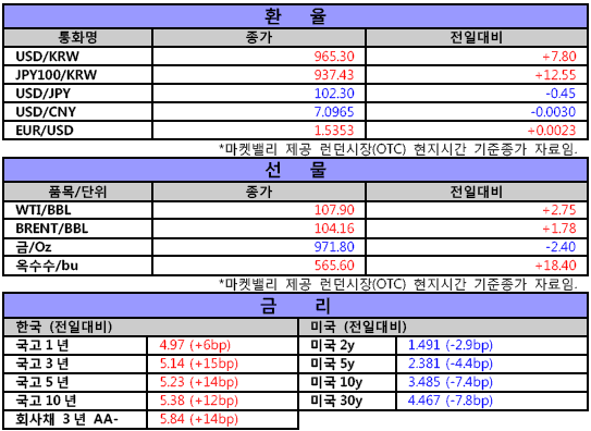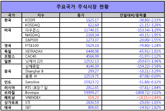 한눈에 알아보는 10일 전세계 주요시장 현황