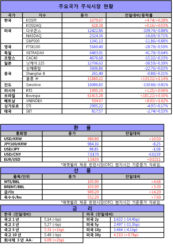 한눈에 알아보는 26일 전세계 주요시장 현황