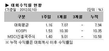 [2012/02/13 대회시황] 코스피지수 2000선 회복, 금융섹터펀드 강세