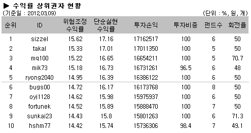 [2012/03/12 대회시황] 국내펀드 비중 상승, 상위권 순위 모두 변동!