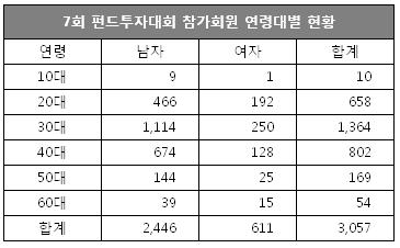 2012년 7월 2일 제 7회 제로인 펀드투자대회가 시작됐다. 지난달 6월 중순부터 모집을 시작한 이번 대회는 7월 1일 기준으로 총 3,057명의 회원이 참가 신청을 했다.