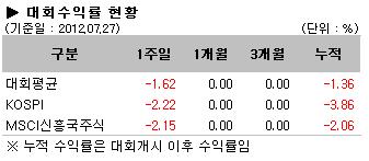 [2012/07/30 대회시황] 국내외 증시 한주만에 하락, 일본증시 -3.70% 수익률로 가장 부진!