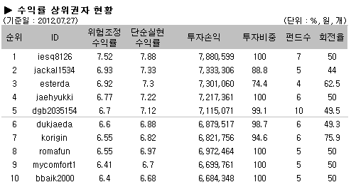 대회순위는 iesq8126 회원이 7.52% 수익률로 1위에 올라섰고, 전주 4위였던 jackal1534
