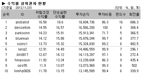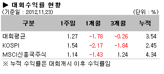 [2012/11/26 대회시황]국내외 주식형펀드 상승, 일본주식펀드 인기↑