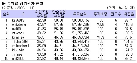 [2009/11/11 대회시황] 10주만에 1위 체인지!