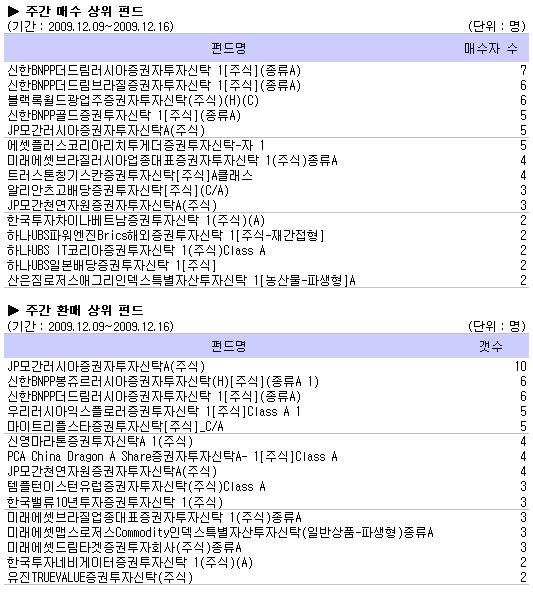 [2009/12/16 대회시황] 러시아펀드 매도 강세, 수익률은 2주째 상승