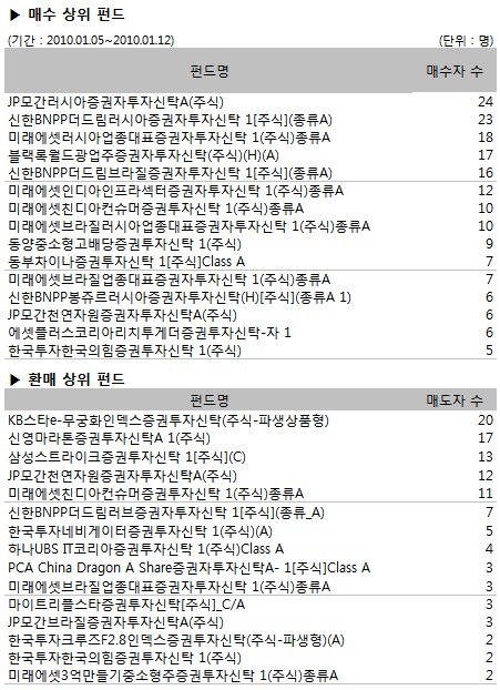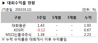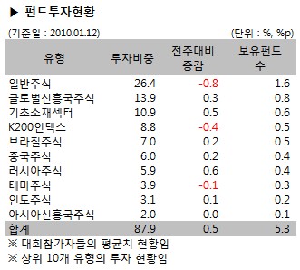 [2010/01/12 대회시황] 국내펀드 비중 ↓, 러시아펀드 비중 ↑