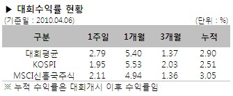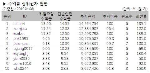 [2010/04/06 대회시황] 대회 수익률 상승, 상승무드 지속!
