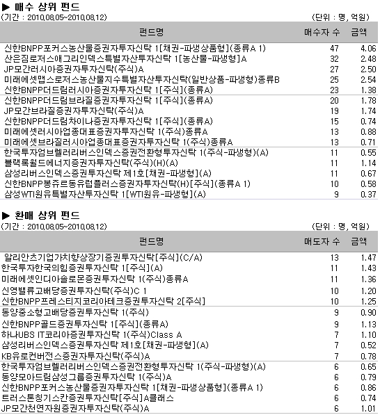 [2010/08/12 대회시황] 농산물/원자재관련 펀드 강한 매수세 지속