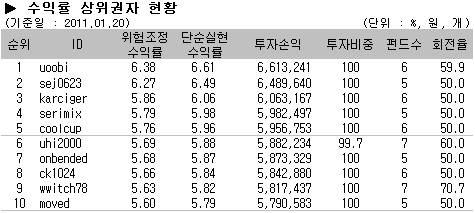 [2011/01/20 대회시황] 코스피 2100선 돌파, 참가자 포트폴리오 대폭변동