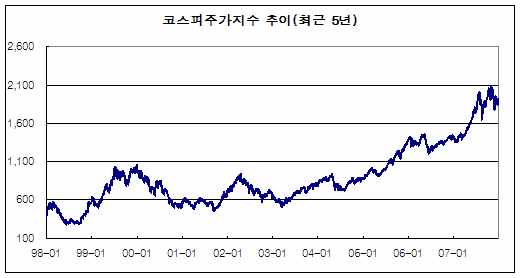 2008년 국내 증시는 글로벌 증시의 변동성 확대로 상반기 조정 거친 뒤 하반기 완만한 상승세를 보일 것으로 전망되고 있다.