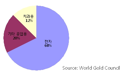• 공업재료로서의 수요 – 기존 전자 산업 이외에 새로운 산업 분야에서도 금을 원재료로 사용.