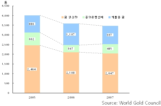 최근 3년간 공급은 전체적으로 감소하였다. 금의 공급 루트는 세 가지가 있다.