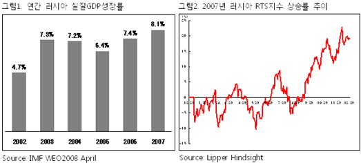 1.러시아 – 2007년 8.1% 경제성장률 기록, 주식시장은 19.18% 상승