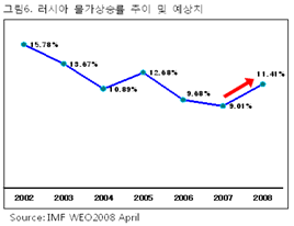 2008년 러시아 경제가 상승세를 유지할 것으로 보여지기는 하나 인플레이션과 원유 및 원자재에 편중된 주식시장을 러시아의 성장에 대한 위험요인으로 들 수 있다.
