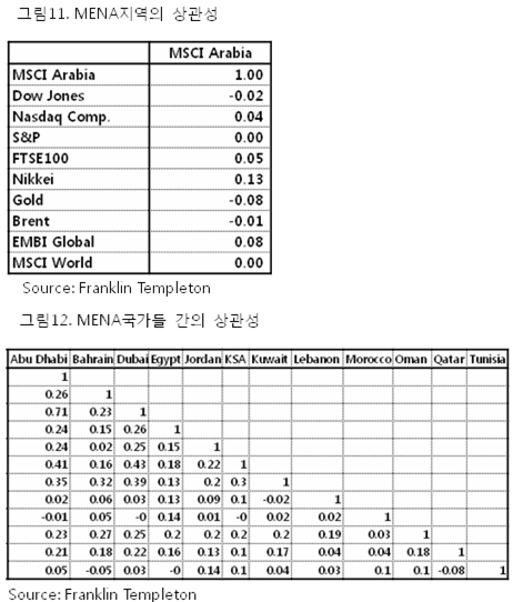 MENA지역 시장의 높은 상승률은 고유가, 내수시장 활성화, 글로벌 시장과의 낮은 상관 관계 등에서 그 원인을 찾을 수 있다.