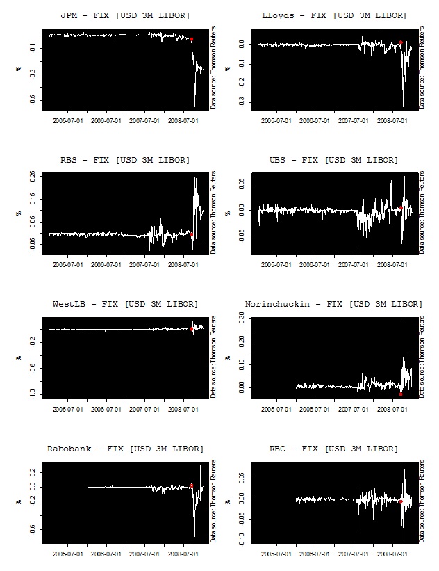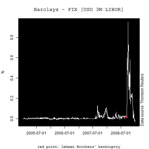 BBC에 따르면 리먼브라더스의 붕괴 이후, 바클레이즈가 타 은행보다 높은 금리를 제출하자 영란은행이 바클레이즈의 유동성에 문제가 있는지 질의했다고 한다. 가디언이 공개한 톰슨 로이터에서 제공된 은행 별 제출금리를 살펴보면, 리먼 파산 이후, 바클레이즈 금리가 리보보다 60bp 이상 높다.