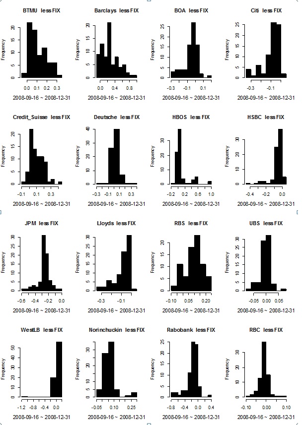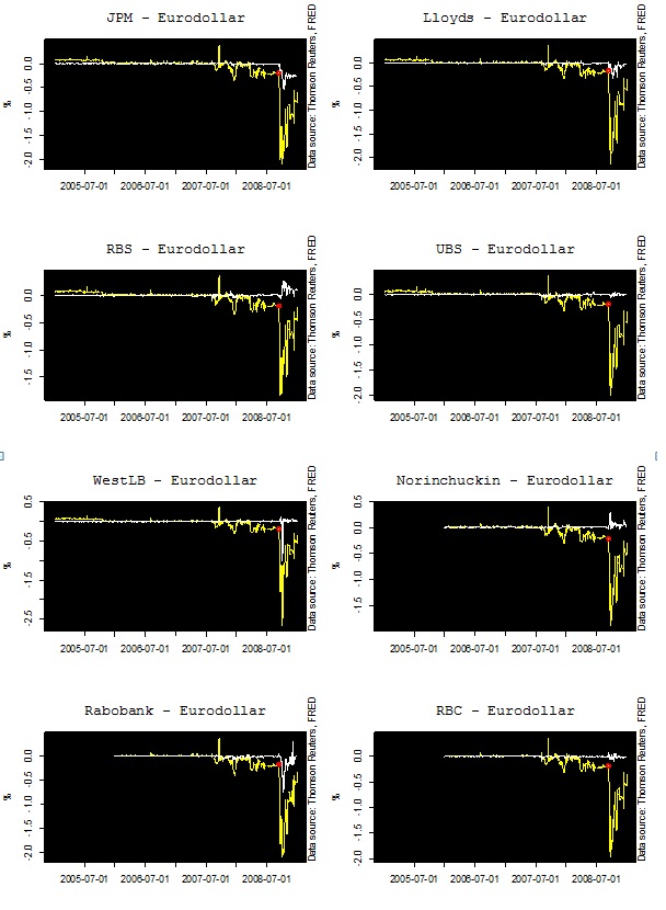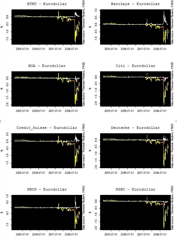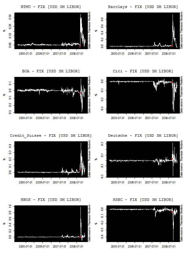 금융위기 이전에는 패널 은행들의 제출금리 간에 큰 차이가 없었다. 범위가 몇 bp에 불과하다.