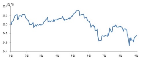 [그래프 2] 파워쉐어즈 시니어론 ETF 가격 추이