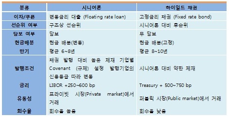 [표 1] 시니어론과 하이일드 채권의 차이점