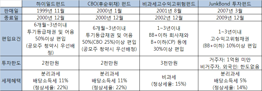 [표 1] 하이일드 펀드에 대한 과거 세제지원사례