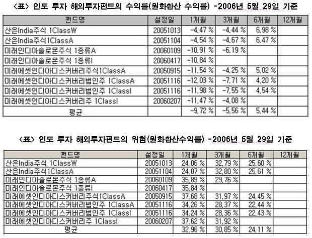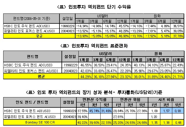 이러한 인도투자 펀드의 성과 및 위험을 간략히 살펴보자.