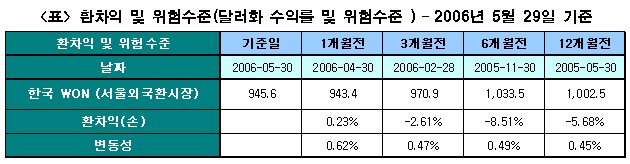 해당기간 동안 달러화 수익률과 위험수준을 계산해보면 10%의 수익률 감소와 2~3%의 변동성 감소가 발생한 것으로 나타나고 있다.