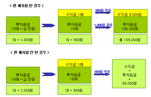하지만 甲씨의 예상과는 반대로 달러가치가 오를 경우엔 환헤지를 통해서 손실을 볼 수도 있다.