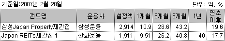 지난해 일본 주식시장은 활황을 보인 타지역과 달리 한마디로 ‘죽을 쑤었다’고 표현해도 될 정도이다. 그러나 주식시장에 상장된 리츠(부동산펀드)는 상황이 달랐다. 경기회복을 배경으로 공실률이 급감했고 부동산시장도 되살아날 기미를 보이면서 리츠시장은 지난 2006년 한해동안 28%에 달하는 고공행진을 벌였던 것이다.