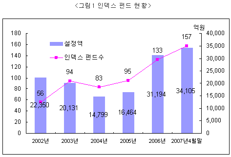 최근 주식시장이 활황에 접어들자 인덱스펀드에 대한 관심이 높아지고 있다. 인덱스 펀드는 시장 상승에 대한 믿음은 있으나 개별 종목 선택이나 펀드선택에 어려움을 느끼는 투자자들에게 매력적인 상품으로 많은 장점을 지니고 있다. 인덱스 펀드는 특정주가지수를 추종하도록 포트폴리오를 짜는 펀드를 지칭하는 것으로 미국을 비롯한 선진국 시장에선 전체 펀드 중 30~40%를 차지할 정도로 활성화 되어 있다.